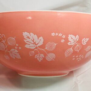 This large vintage Pyrex nesting bowl is in their pretty pink "Gooseberry" design #444 and is from the 1960's.