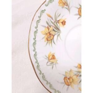 VNTG Queen’s March Daffodil Saucer White Fine Bone China Yellow Floral Dainty