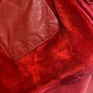 Gorgeous Red full grain leather with zip in/out velour lining that’s a tad deeper than the blood red OUTTER. So soft and well made