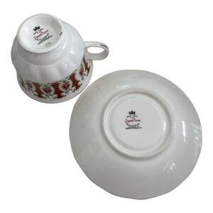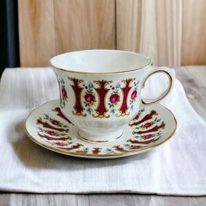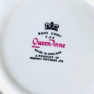 Vintage Ridgway Queen Anne England Bone China Teacup & Saucer Gold Pink Roses Set Gift