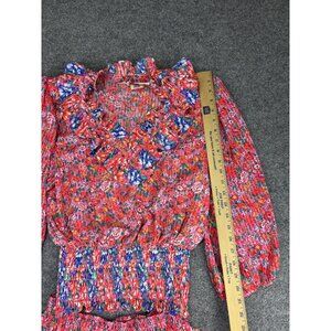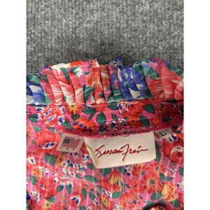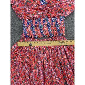 VNTG Susan Freis 2 Piece Skirt Set Womens Large Red Floral Ruffle Neck USA Boho