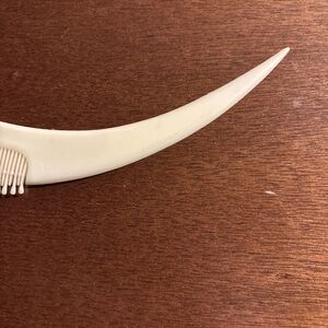 The Vintage Tip Top Unbreakable Hair Tease Comb is a unique and collectible item with a curved rat fish tail design and a rounded handle. This comb is specifically designed for grooming and styling hair, making it a practical addition to any vanity or dressing table. Its vintage charm adds a touch of nostalgia to any collection, while its durable construction ensures long-lasting use. Ideal for those who appreciate classic beauty and quality craftsmanship, this comb is a must-have for anyone looking to add a touch of retro elegance to their grooming routine.