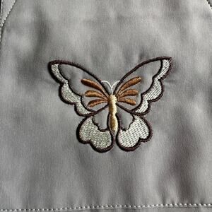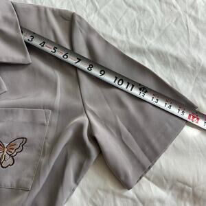 VNTG Tradition Butterfly Embroidered, Short Sleeve, Silk Like Button Up