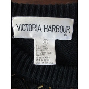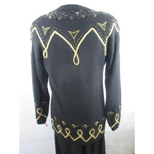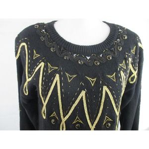 VNTG Victoria Harbour S Knit Sweater Beaded Rhinestones Ribbon Women Black Gold