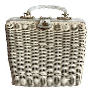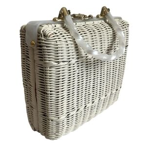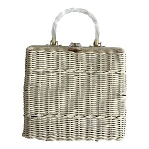 Chic and stylish white wicker handbag perfect for any occasion. Add a touch of elegance to your outfit with this versatile accessory.