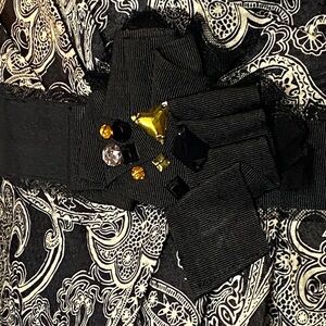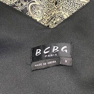 VNTG Y2K BCBG Black and Cream Silky Textured Paisley Mini Bubble Dress