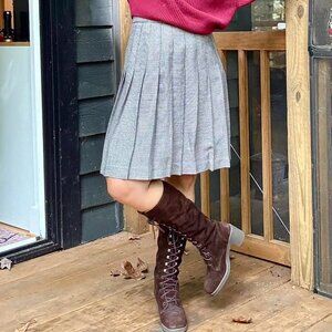 if you are looking for the ultimate preppy school uniform style skirt, this is the piece for you. get a retro mod regency aesthetic. high waisted, pleated with knit fabric.
