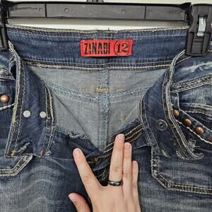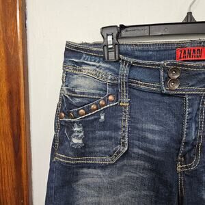 VNTG Y2K Zanadi Ramie Denim Jean Shorts Embellished Distressed Stretch Women's Size 12/Large. Excellent condition.