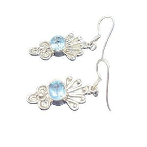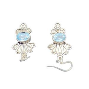 VNTG Victorian 925 Sterling Silver & Real Blue Topaz Drop Earrings — Like New