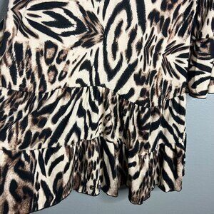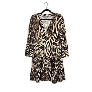 V-Neck Animal Print Mini Dress Bell Sleeve Tiered Flowy Relaxed Casual XL