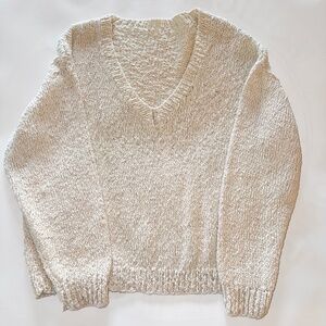 V-Neck Boucle Sweater Tee People Boho Style Ivory/ ecru/ off white color- PERFECT Sweater