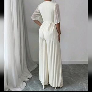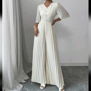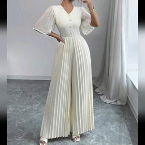V-Neck Button Pleated Women Elegant Jumpsuit