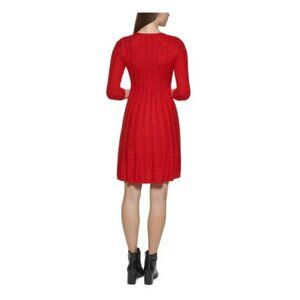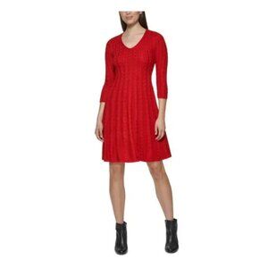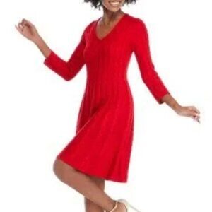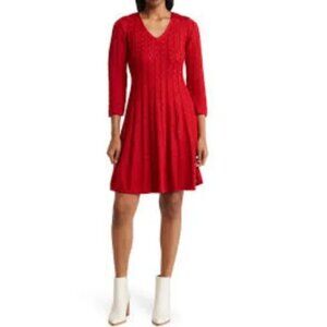 Jessica Howard Sweater Dress Cable Knit V-Neck Midi Red XL