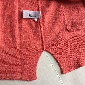 Details: Long v-neck cardigan in coral. 6-button placket. 2 front pockets. 3" side slits. Slightly stretchable. Perfect for Spring.