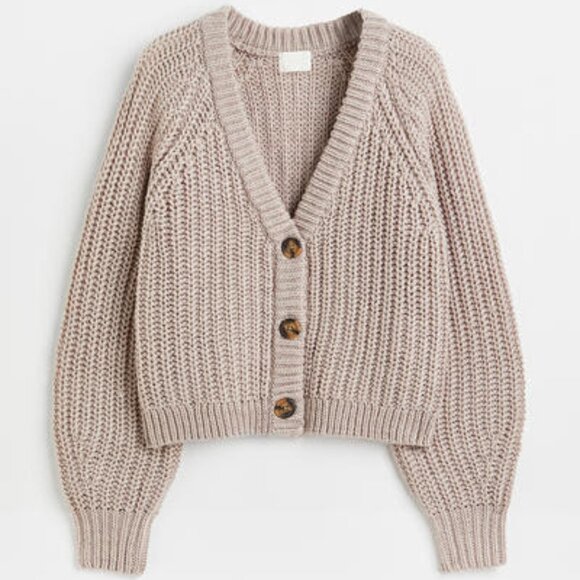 Grey/taupe v-neck cardigan in excellent condition. Bought this as a babaà dupe; didn't end up liking how it looked on me.
