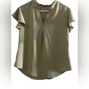 Description: Women Summer Business Casual Tops V Neck Ruffle Short Sleeve T Shirt Chiffon Blouses Loose Tunic Top