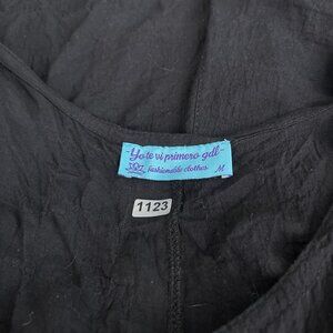 V-Neck Front Pockets Sleeveless Romper Wooden Buttons Crinkled Texture Black M