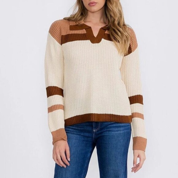 Embrace the thrill of bold style with our V-Neck Knit Colorblock Pullover Sweater! Featuring a daring combination of cream and grey hues, this 100% acrylic sweater is sure to make a statement. Stay cozy and chic with this must-have addition to your wardrobe. Take the risk and stand out from the crowd!