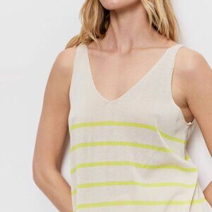 V-Neck Knitwear Tank ~ Muslin/Desert Lime Stripe