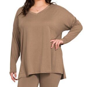 This buttery soft brushed DTY microfiber loungewear set is designed with a flattering v‑neck long sleeve top and matching leggings featuring hip slips for added coverage. Perfect for women’s loungewear, athleisure wear, or casual chic outfits, it offers cozy comfort with perfect stretch and recovery. Crafted from a durable yet soft polyester spandex blend (90% polyester, 10% spandex), the two‑piece outfit is ideal for everyday wear, lounging at home, or running errands in style. Shoppers searching for a microfiber leggings set, matching top and leggings, slim fit lounge set, or comfortable everyday wear will find this piece versatile and appealing. Keywords include v‑neck long sleeve set, buttery soft loungewear, brushed DTY microfiber, leggings outfit, matching set, women’s loungewear set, athleisure