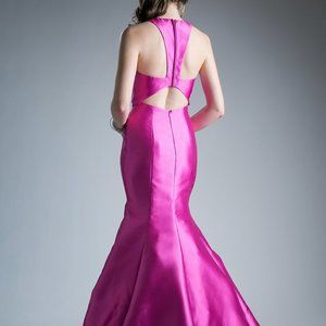 Long Formal Evening Dresses with v-neckline, sleeveless dress, open back with zippered closure, mermaid shape.