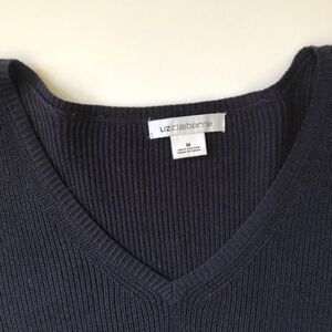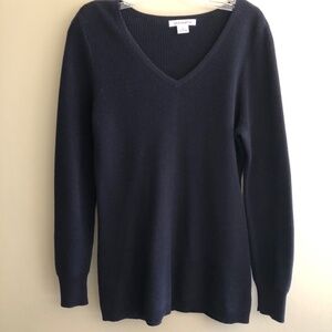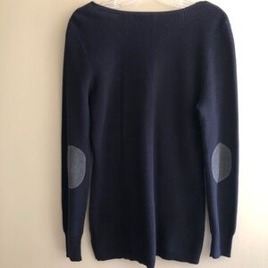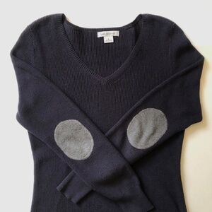 V-Neck Navy & Gray Elbow Patched Sweater/Tunic MED