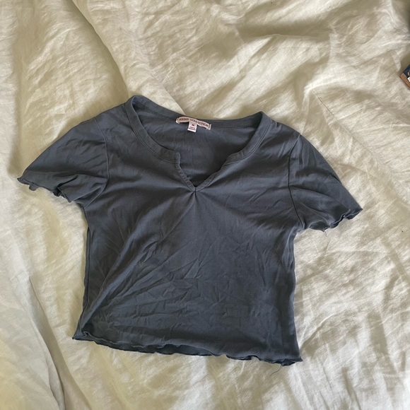 Gray baby tee with a lettuce edge! Perfect for lounging or wearing out