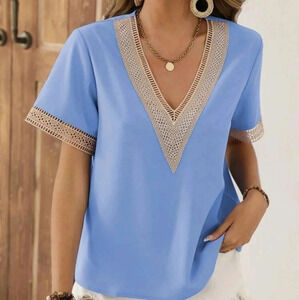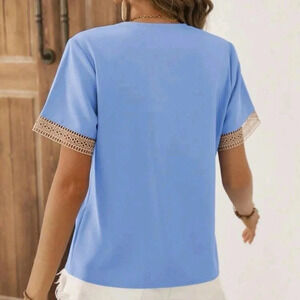 V-Neck Short Sleeve Shirt With Lace Detailing