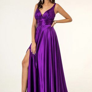 Prom , Party , Formal ,Satin Gown Dress, Evening ,goddess, slimming, hourglass, Valentines, Wedding guest, Rehearsal dinner, Bridal shower, Bridal gown, Wedding Gown, Sexy, Bride gown, Hot Wedding Gown, Aline ,Open Back Dress Gown , Purple Dress