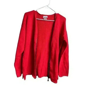 VO II Red Sweater Cardigan with Rhinestone Zipper Size Medium