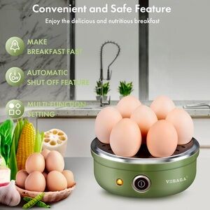 VOBAGA Electric Egg Cooker, Rapid Egg Boiler with Auto Shut Off for Soft, Medium, Hard Boiled, Poached, Steamed Eggs, Vegetables and Dumplings, Stainless Steel Tray with 7-Egg Capacity (Green)