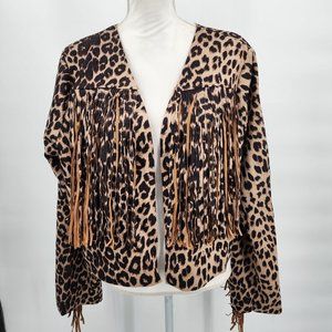 VOCAL APPAREL Fringe Cropped Leopard Print Western Jacket Plus Size 1X-3X NWT