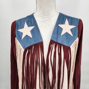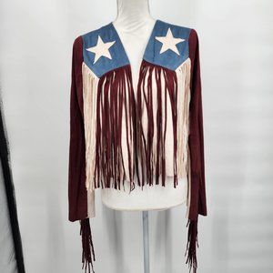 VOCAL APPAREL Fringe Ultrasuede Cropped American Flag Western Jacket S-XL NWT