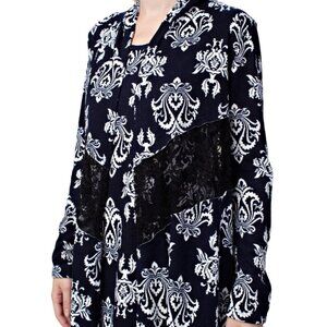VOCAL Navy & White Damask Print Cardigan Sweater S-XL NWT