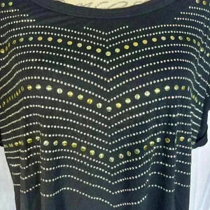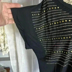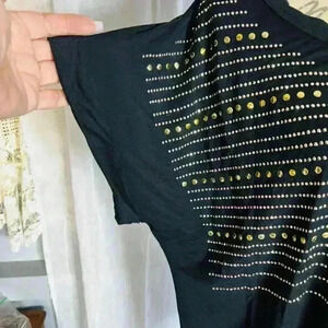 VOCAL PLUS SIZE Womens BLACK SHIRT BLOUSE TOP 3X Gold Silver BEADS Tunic