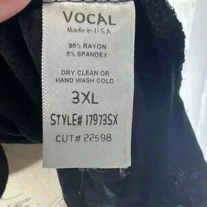 Add a touch of elegance to your wardrobe with this Vocal USA black blouse. The blouse features a round neckline and short sleeves, perfect for any occasion whether it be casual or for a party. The pullover closure makes it easy to wear and the relaxed fit adds comfort to the blouse. Made with spandex and rayon, this lightweight blouse is easy to care for and stretchy. The blouse is perfect for any season, whether it be winter, summer, fall, or spring. The beaded accents give the blouse a metal theme and the tunic style adds a relaxed yet stylish look. Available in plus size 3X, this blouse is a must-have for any wardrobe.  Curve-friendly, date night, vacation, beach, cruise, classic, classy, rock n roll, grunge, goth, stylish