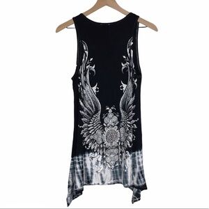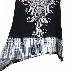 VOCAL Tunic Top Dress Tie Dye Rhinestone Wings Feathers Long Line Size Small