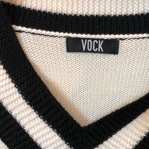 VOCK v-neck oversized sweater. White w/ Black Trim Pit to Pit 25" Preworn