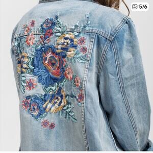 Boho floral embroidered jean jacket