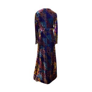 VOGUE Paris Collection Vintage Velvet Gown Long Sleeves Blue Floral