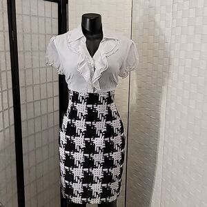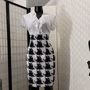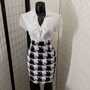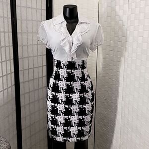 VOIR VOIR TWO-TONED SHORT SLEEVE SILK TOP DRESS SIZE 12 COLOR BLACK &WHITE FOUR BUILT-IN BELT LOOP AND HIDDEN SIDE ZIPPER CLOSURE FEATURING 3-BUTTON DOWN COLLAR WITH MADE 100%POLYESTER THIS ITEMS IS PRE-OWNED EXCELLENT CONDITION WITH ONLY LIGHT SIGNS OF WEAR IF ANY CHECK THE PICTURES