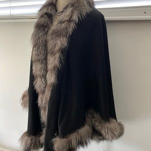 VOLARE New York Cashmere Black Shall with Fox Fur Trim