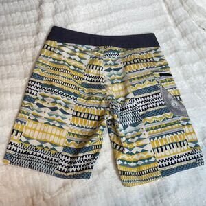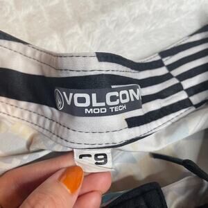 VOLCOM 29 Blue Yellow Boardshort Swim Trunks Zip Pocket Drawstring Black