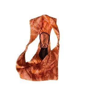 Crafted partially with Greenlon recycled nylon, the women's Blocked Out Skimpy Bikini Bottom features a custom Volcom print and scaled-back bum coverage to show off your curves. This bikini bottom comes in orange in a size medium, and is new with tags!