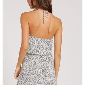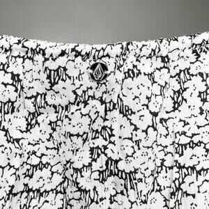 VOLCOM Bae Bae Doll Tube Top Cropped Drawcord Halter Floral Black White Size S