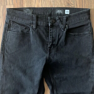 Volcom black solver modern straight leg jeans. Cutoff at ankle. Size 30 waist. Cotton/poly/spandex blend.