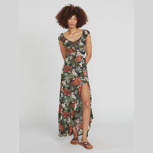 VOLCOM CoCo Ho Black Floral Tropical Maxi Dress Summer Vacation Beach XS