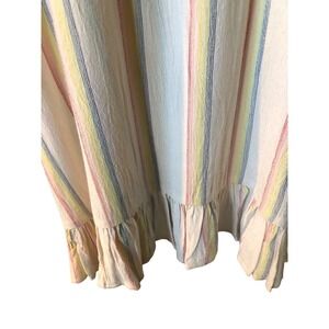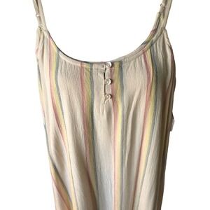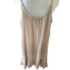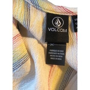 VOLCOM Island Crush Dress Size SMALL Women's Ruffle Hem Beige Striped NWT $60