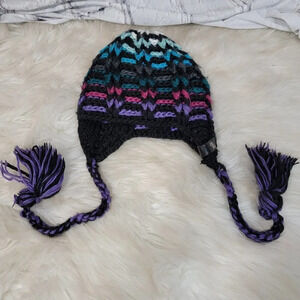 VOLCOM Men Womens Unisex Black Purple Blue Earflap Knitted Winter Hat Punk Skate