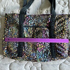 This HUGE, sturdy, authentic Volcom tote is perfect for the girl with an edge! It features a dual-sided design, giving you two great looks for one price. Perfect for travel, gym, school, or a weekend getaway.